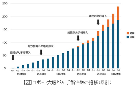 当院では2019年2月にダヴィンチXiを導入し、2019年内に外科・消化器外科(胃がん、直腸がん)、婦人科、泌尿器科の4領域、2023年には呼吸器外科で保険手術適応を取得しました。